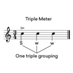 In a simple definition, meter is the way the rhythms are arranged in piece. Each meter and time signature has a very different and unique feel with stronger and weaker beats in each bar. Meter explains why a song feels and moves how it does.